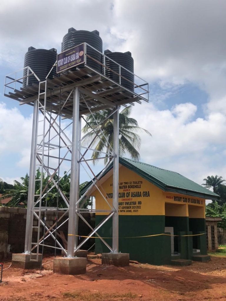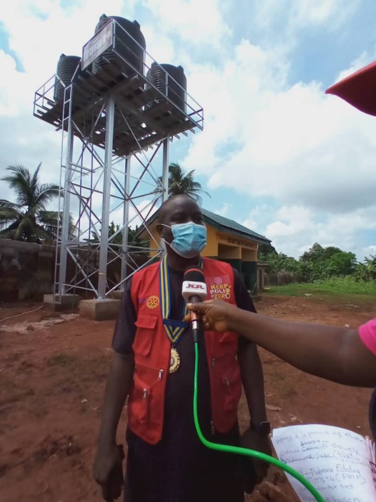 He continued; “touching lives positively is what the Rotary Club of Asaba GRA exemplifies. We have just donated a 3000 Gallons of capacity water project and four block of modern toilets to Ashinze Primary School, Azagba Ogwashi-Uku in Aniocha South Local Government Area of Delta State”. As the outgoing President, Rotary Club Asaba GRA, I donate the toilets to the pupils and teachers. The the water project and the accompanying generator will serve both the school and entire community”.
