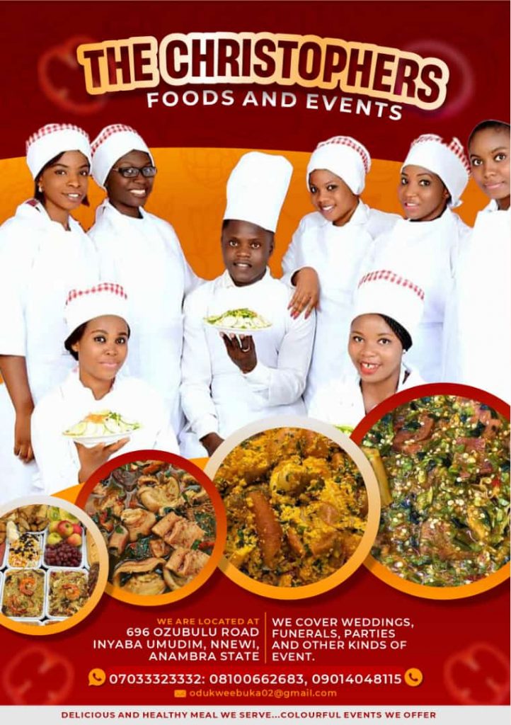 As part of efforts to ensure paradigm shift in hospitality management by way of providing satisfactory services to customers, clients in the industry and promote 21st Century model in the sector, The Chief Executive Officer/Managing Director, The CHRISTOPHERS FOODS AND EVENTS, Nnewi, ANAMBRA State, Mr. Ebuka Odukwe Christopher has said that the management team in his newly established business is capable of feeding nations with delicious and healthy meals.