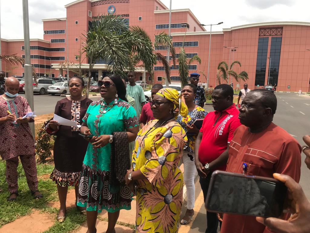 “The Women who were accompanied by the Nigerian Police Aand other security agencies were seen at Okpanam Road in the streets of Asaba, Delta State capital, moved from the State Assembly, they were told to check back as neither the Assembly speaker, nor State Rep Members were in office when they arrived the complex. Members were not in their after tabling their demands, expressing their concerns on the need for women to be given their respect in the society”.