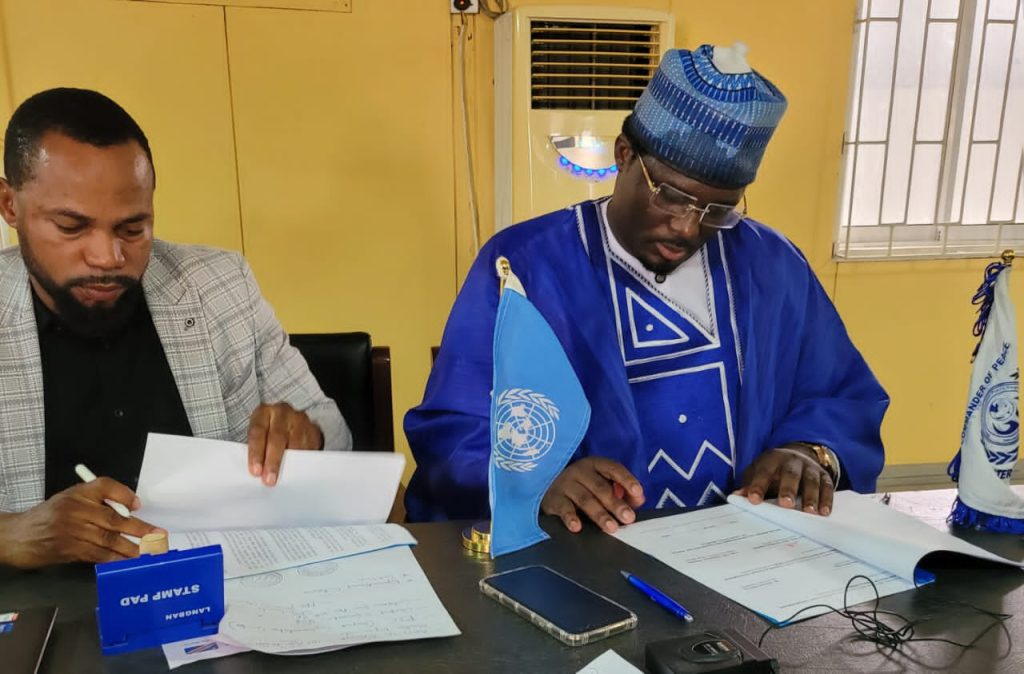 The official signing of the Memorandum of Agreement led by the Head of Mission, UN – IPGC Africa, His Excellency Ambassador (Dr.) Jonathan Ojadah was witnessed with IPGC Executives including Amb. (Dr) Godwin Stanley (Regional Head, West Africa) and Christiana Otiti (Special Envoy to Edo State) , members of the Nigerian press.