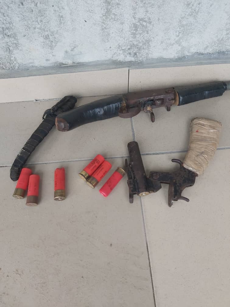 Police confirmed that detailed operatives recovered in that operation: One cut-to-size english double barrel, one locally made pistol, six expended cartridges, two live cartridges and a big iron cutter.