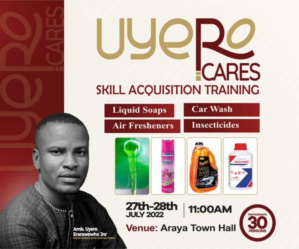 The organizer, Comr. Ambassador Uyero Erarawewho Jnr told the media during the interview that the purpose of the skills training is to create wealth and a better livelihood for his Community Youths, fellow ward members, Isoko citizens as entrepreneurship development is the new way to go. He added that, he believes with this training, the beneficiaries should be able to use it, not only helping themselves but to train others in the nearest future.