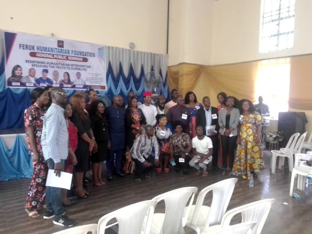 The media learnt this from the CEO, Feruk Humanitarian Foundation, Ambassador Okoro Anthonia who spoke alongside other stakeholders pen-ultimate weekend during a one day general public seminar of the foundation held at Health Management Board, HMB Hall by Marble Hill Junction, Okpanam Road, Asaba, Delta State capital as stakeholders urged citizens, CSO leaders to make a difference in the society.