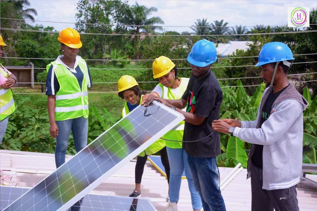 She noted further that, CGWCI Green Energy Project was conceived towards ensuring that Primary Health Centres become accessible to huge numbers of SGBV survivors through the provision of solar energy systems to power the facilities as inability to access health facilities has created evidential dilemmas in prosecuting SGBV cases and perpetuators of this menace. It was on this note that we matriculated a group of 100 young women between the ages of 18-35 years including some SGBV survivors into a six(6) months intensive training on Solar Energy System Installation and Maintenance which started on the 11th of October 2022 as the world celebrated the International Day of the Girl-Child, where upon culmination of the training specifically 31st March 2023, they were further engaged in a one(1) month group work upon which they visited the primary health center in Oleh community on thursday 18th – Saturday 20th May 2023 to practically demonstrate their knowledge by installing a 2.5kva Solar Energy System to power the facility for this particular interventions. This was enabled with the support of our technical partner, MitchelEE Engineering Integrated Services who ensured that the project was a success.