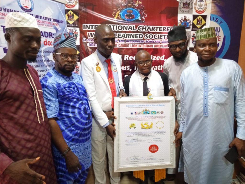 While conferring the awards on Barr. Sulaymon A Tadese at his chamber in Iwo, Osun State recently, the World Grand President of the Society, UNESCO Laureate Prof. Sir Bashir Aremu, noted that the recognitions were based on Barr. Sulaymon A. Tadese’s immense contributions in the Judiciary to the global legal sector through maintenance of peace and justice in the society.