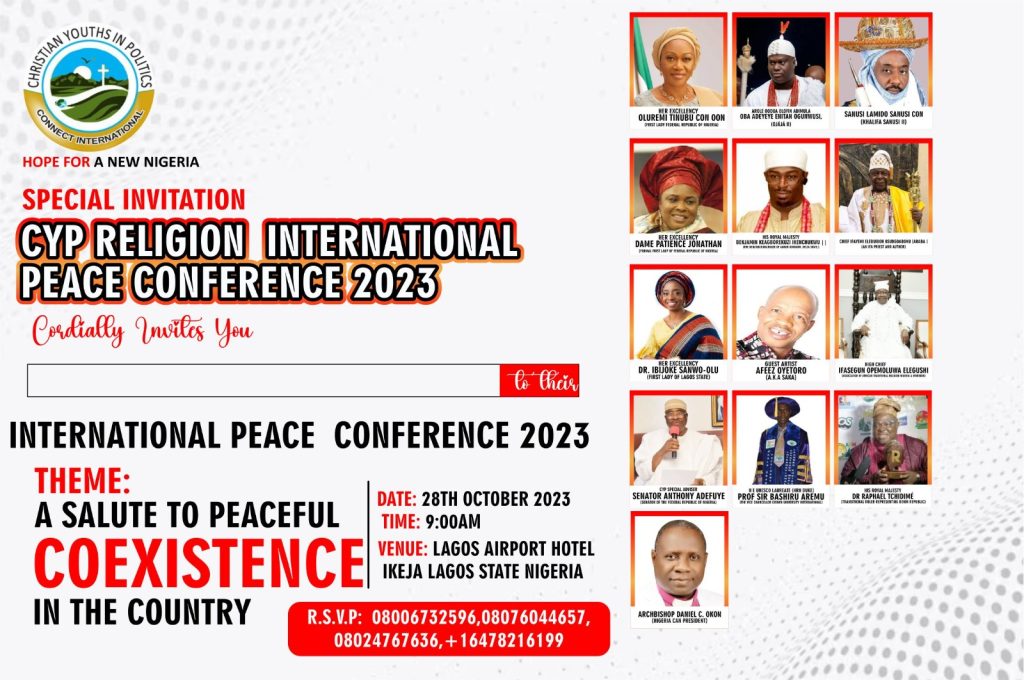 ….2023 Int’l Peace Conference: CYP, OSTG, CAN Invites UNESCO Laureate, First Lady of Nigeria, Sanusi Lamido Sanusi,Ooni of Ife,Others