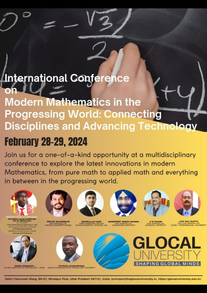 UNESCO laureate and Vice-Chancellor, Crown University, USA, Prof. Sir Bashiru Aremu, has Commended the Management and Staff of Glocal University, India on the for organising the forthcoming February 28-29, 2024 International Conference on the topic “Modern Mathematics In The Progressing World: Connecting Disciplines & Advancing Technology” to proffer practical solutions to numerous global problems or challenges.