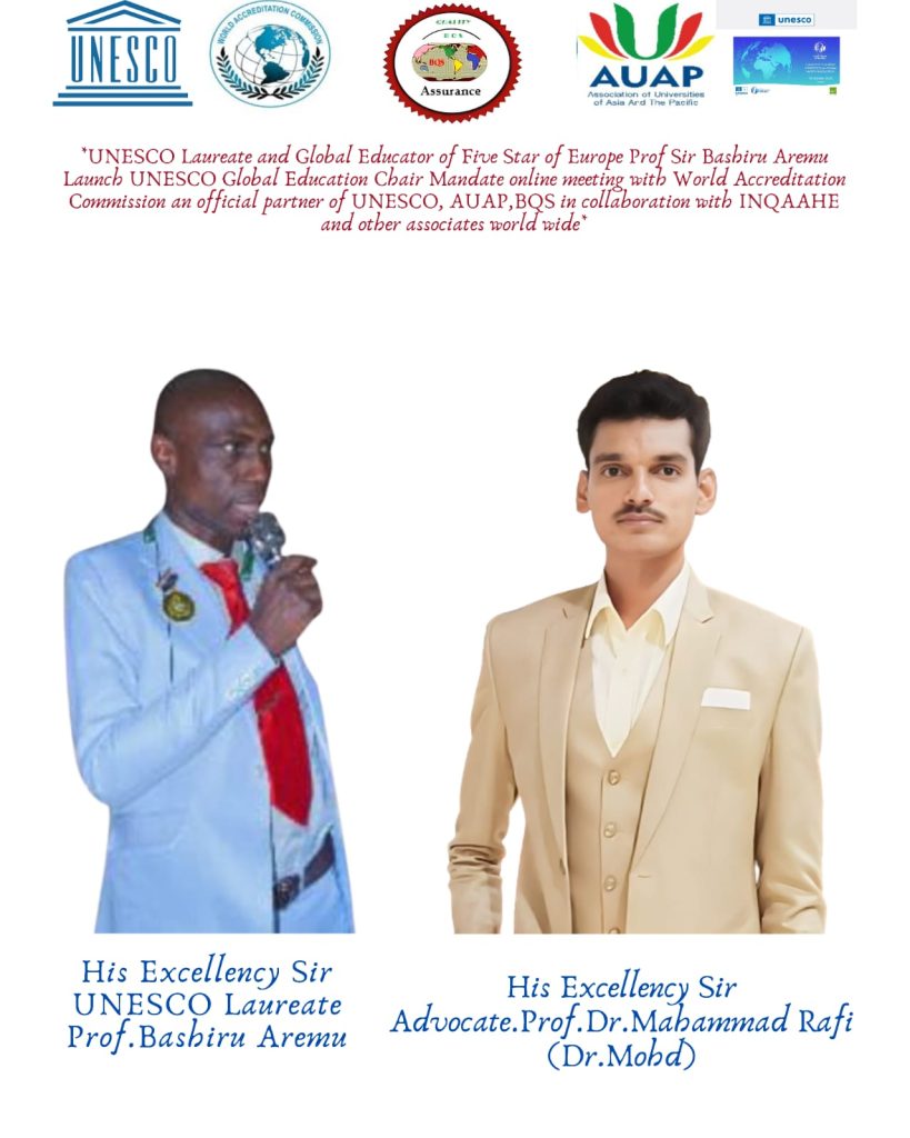 ………… UNESCO Global Education Committee and UNESCO Laureate Prof. Sir Bashiru Aremu Commend Prof. Dr. K Mahammad Rafi’s Remarkable Journey in Education, Research, and Innovation
