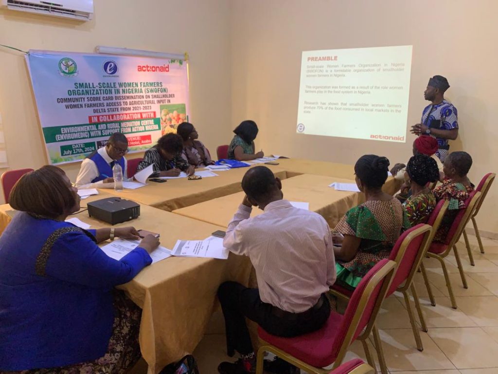 Delta Uhuru Reports that ENVIRUMEDIC led by its CEO, Monday Oghenerouna Itoghor made this remark July 17, 2024 at Orchid Hotel in Asaba, Delta State capital through his representatives; the Senior Program Officer, Mr. Lucky Enegide, Program Officer, Alex Okekporo during a one-day workshop as ENVIRUMEDIC with sponsorship from ActionAid presents Community Score Card on smallholder women farmers’ access to farm inputs or seedlings in Delta state with findings and recommendations to Delta State Ministry of Agriculture.