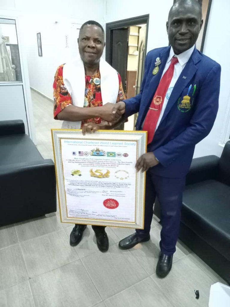 Prof Sir Bashiru Aremu, The World Grand President, International Chartered World Learned Society (ICWLS), USA, has congratulated Prof. Augustine Amadikwa Uwakwe on his global recognition and honor with esteemed Life Fellow and Global Golden Five Star Awards from ICWLS, USA as he bags the “Most Notable and Top Distinguished Academic Leader of the 21st Century”.